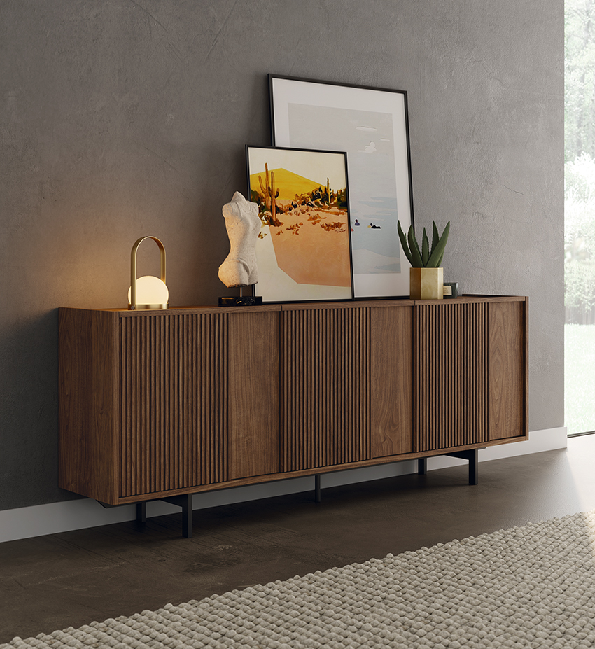 Buscando la relevancia de los materiales nobles nace esta propuesta que, sirviéndose de un sencillo marco, articula una gran variedad de opciones. Sobre esta pieza base aparece un ritmo constante de celosía que juega con acabados y texturas conformando una colección versátil y dinámica.